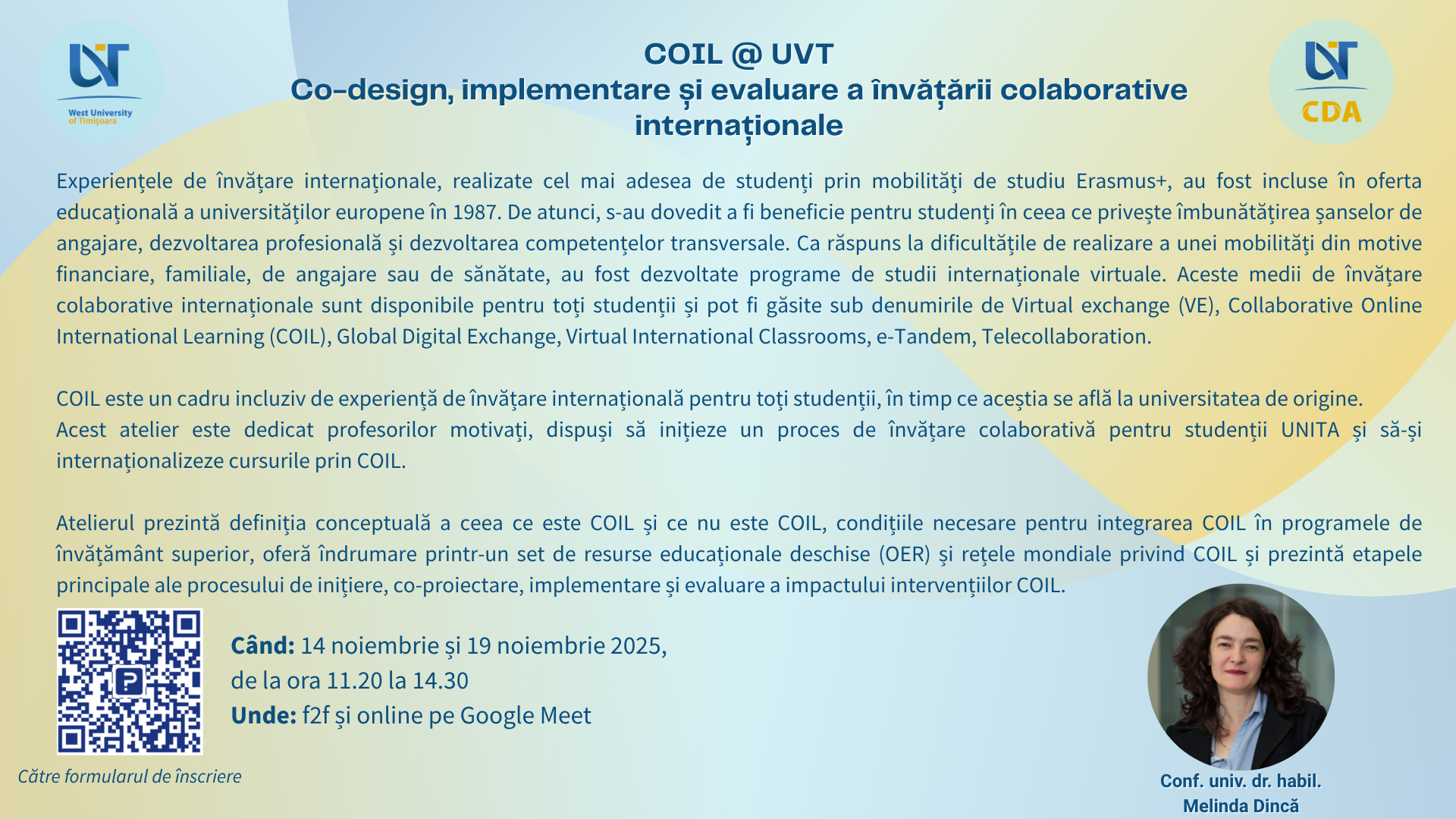 - COIL @ UVT Co-design, implementare și evaluare a învățării colaborative internaționale